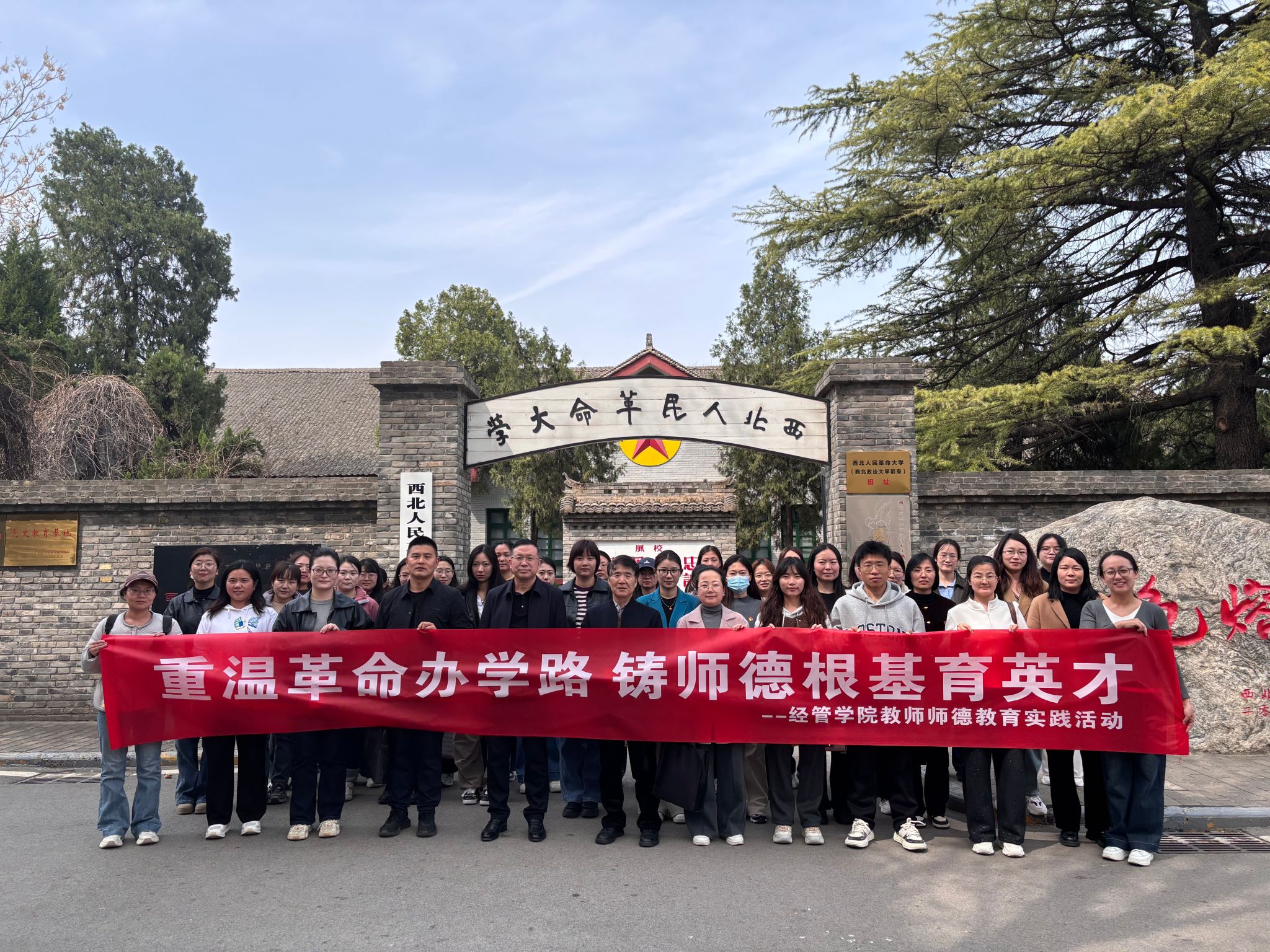 为深入推进师德师风建设,传承红色革命精神,强化教师队伍思想政治素养,3月30日下午,经济管理学院教工党支部组织全体教师,前往西北人民革命大学旧址博物馆开展师德教育实践活动。西北人民革命大学旧址博物馆是见证新中国培育党政干部的“红色熔炉”,承载着艰苦奋斗、忠诚为民的革命精神。抵达西北人民革命大学旧址后,全体教职工党员佩戴党徽,在广场上庄严列队。大家高举右拳,庄严宣誓,铿锵有力的誓词回荡在广场上空。这不仅是一次仪式感的重温,...