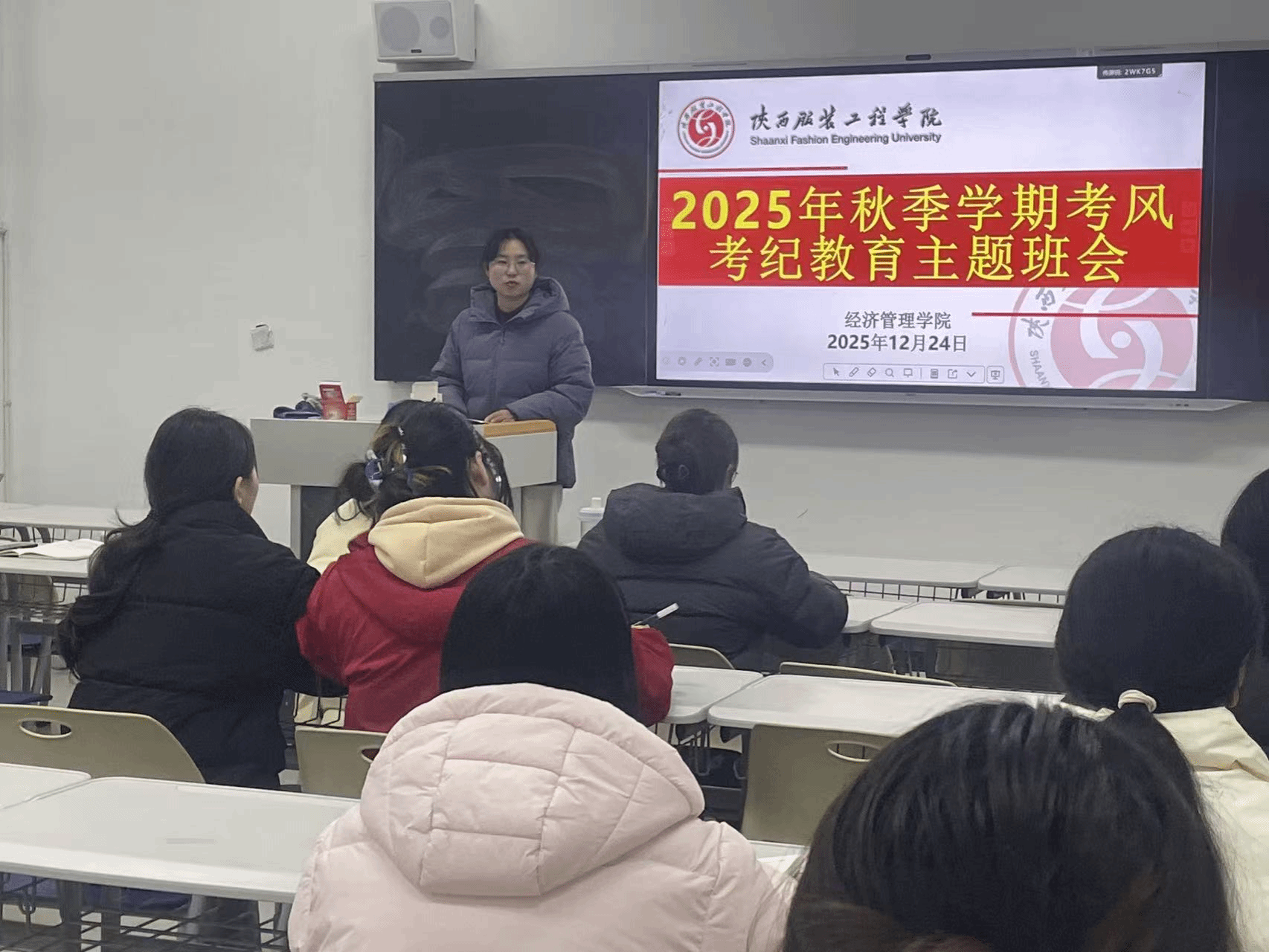 期末考季临近,为强化我院学生诚信应考意识,营造公平公正的考试环境,筑牢期末学风建设防线,12月23日至24日,我院各班级召开考风考纪教育主题班会,覆盖所有考试的学生。