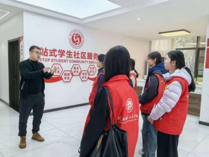 活动伊始,一站式学生社区的葛成主任热情接待了志愿者们,并带领大家参观了社区的整体布局、核心设施与服务构成,细致讲解了为全校师生打造的全方位、便捷化服务体系。
