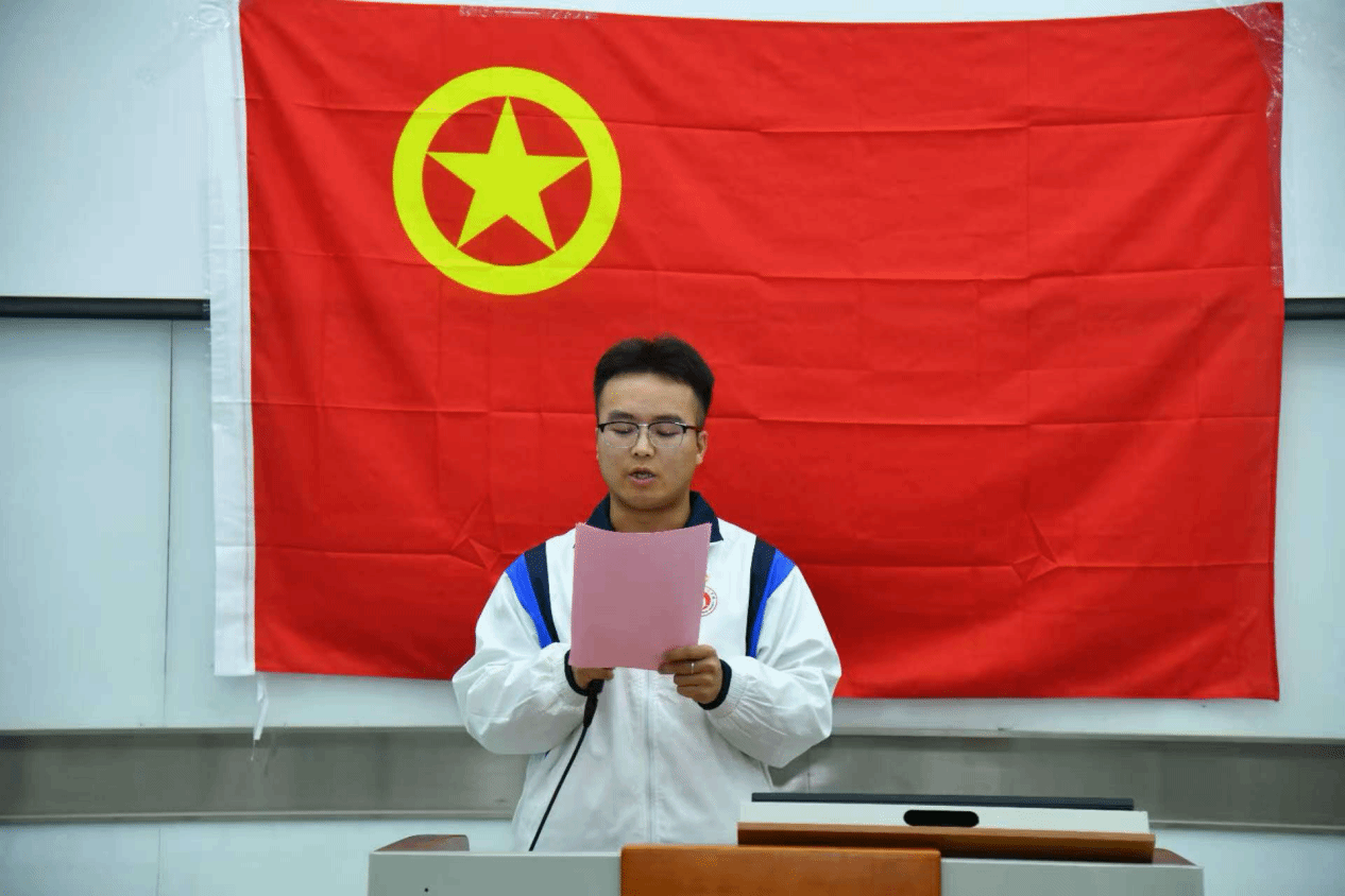 优秀共青团员代表康超结合自身的学习经历与实践感悟,向新团员们分享成长心得,鼓励大家珍惜团员身份,主动投身志愿服务、学科竞赛等活动,在实践中锤炼意志、增长才干,以脚踏实地的行动践行入团誓言,争做有理想、敢担当、能吃苦、肯奋斗的新时代好青年。