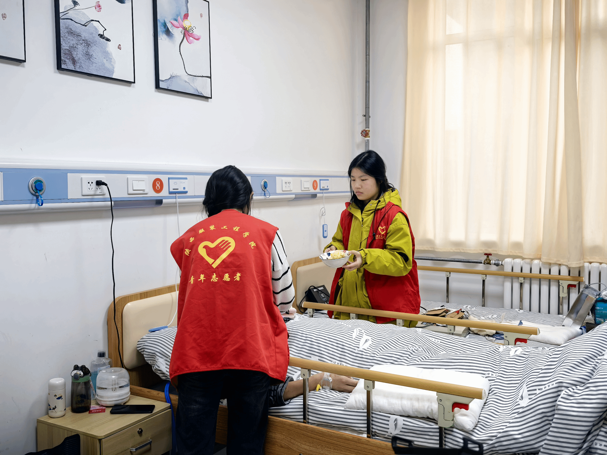 生活协助组的同学则帮卧床老人调试床头呼叫器、将常用药品按日期分好,还教视力不佳的奶奶用语音助手听戏曲;此外,志愿者们为卧床老人准备新鲜水果,并喂给老人吃,老人肉眼可见的感到开心。