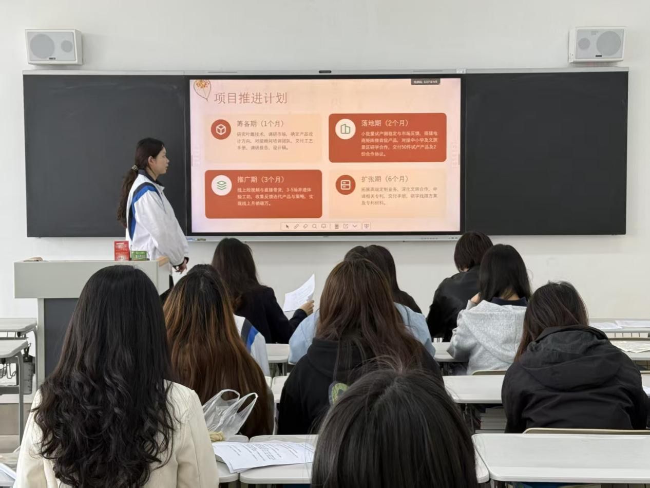路演环节,精彩纷呈。各参赛团队通过PPT展示,围绕项目背景、核心研究内容、创新亮点及应用前景展开系统阐述,将奇思妙想转化为清晰的创业蓝图。答辩环节,评审老师们犀利发问,既一针见血指出不足,又循循善诱给出建议。从逻辑架构的严谨性到数据支撑的可信度,再到落地实施的可行性,评委们的专业指导为项目精准“把脉开方”,助力团队查漏补缺、提质升级。